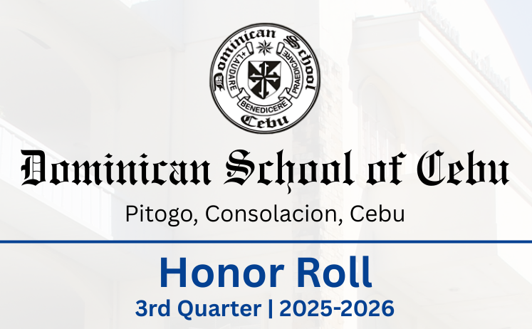 Honor Roll – 1st Quarter, A.Y. 2025–2026 We proudly recognize our students who have demonstrated outstanding academic performance this 1st quarter of School Year 2025–2026. Their dedication, discipline, and pursuit of excellence reflect the values and spirit of Dominican School Cebu. Congratulations to all our Honor Students for your remarkable achievements! Continue to be an […]
